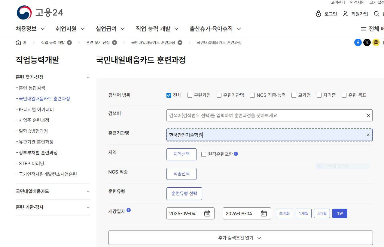 ±¹¹Î³»ÀϹè¿òÄ«µå ¹ß±Þ½Ã°í¿ë 24 ȨÆäÀÌÁö ·Î±×ÀÎ ->Á÷¾÷´É·Â°³¹ß ->ÈÆ·Ã±â°ü¸í¿¡ Çѱ¹¾ÈÀü±â¼úÇпø °Ë»ö->¿øÇϽô °úÁ¤ ¼ö°½Åû ¹öư Ŭ¸¯!!