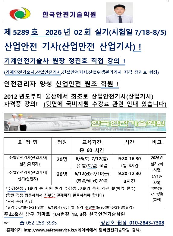 2026³â 2ȸ »ê¾÷¾ÈÀü±â»ç(»ê¾÷±â»ç) ½Ç±â °³° ¾È³» -> 6¿ù °³°